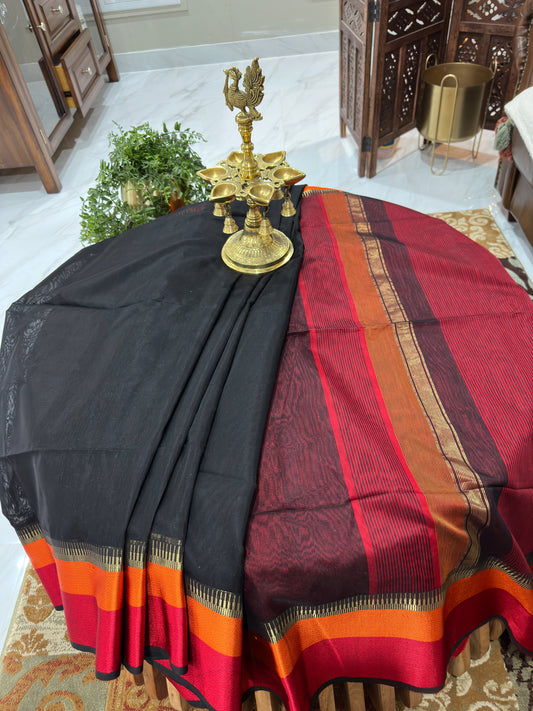 Black Saree with Rani and Narangi Resham Borders