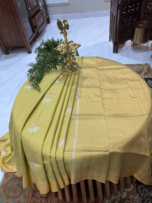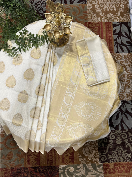 Cream and Gold Coloured Banarasi Silk Blend Saree