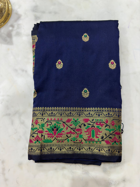Ethnic Motifs Navy Blue Zari Silk Blend Paithani Saree