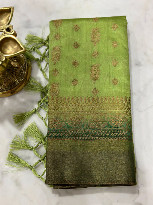 Green & Gold-Toned Ethnic Motifs Art Silk Banarasi Saree